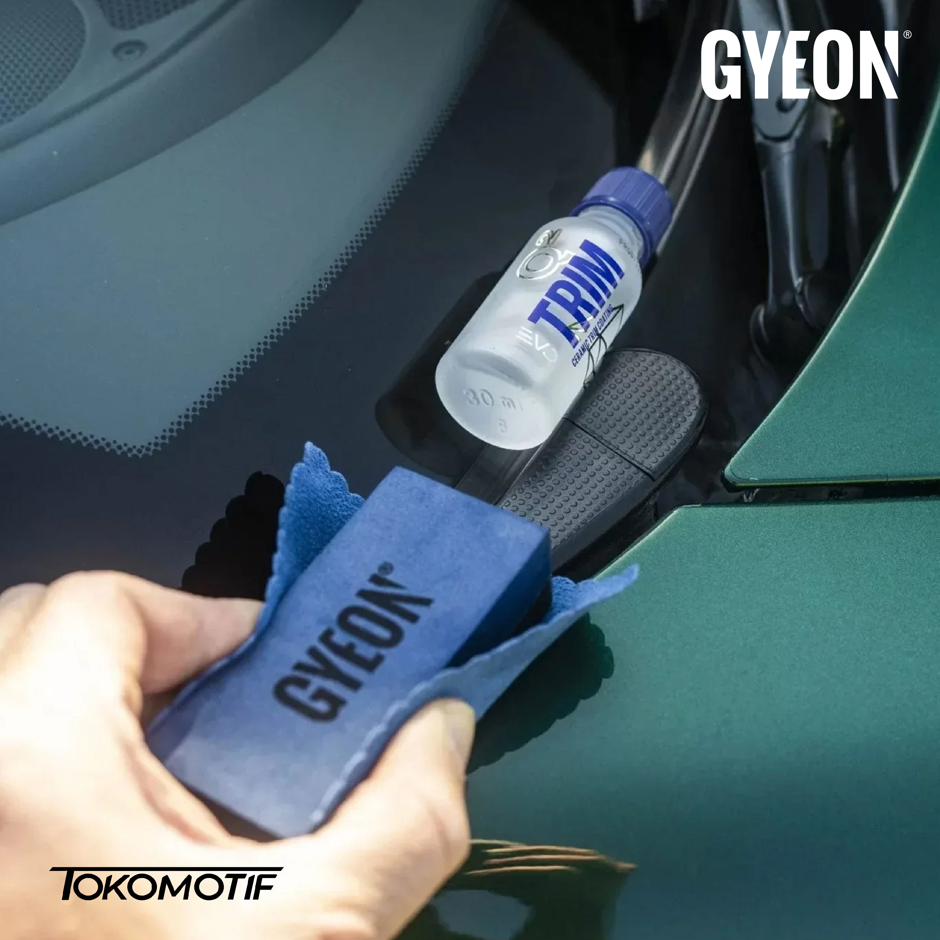 Untuk hasil lebih merata, gunakan foam applicator pada trim dengan struktur berpori.